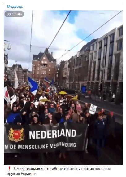 У соцмережах шириться відео, яке нібито відзняте у Нідерландах під час масових протестів. Як стверджують користувачі, люди скандують проти передачі зброї Україні та вимагають відновити ферми, які збанкрутіли через санкції проти росії. Але це не так.