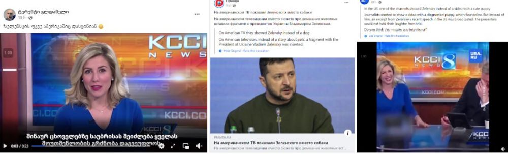 У соціальних мережах з‘явилось відео нібито з програми новин одного з американських телеканалів. Ведуча програми розповідає про «цуценя з Огайо, яке привернуло увагу всієї країни». Під час розвоми позаду ведучих йшов сюжет Володимира Зеленського до Великої Британії. Коментарі під дописами пишуть, що нібито президента України висміяли. Але відео несправжнє.