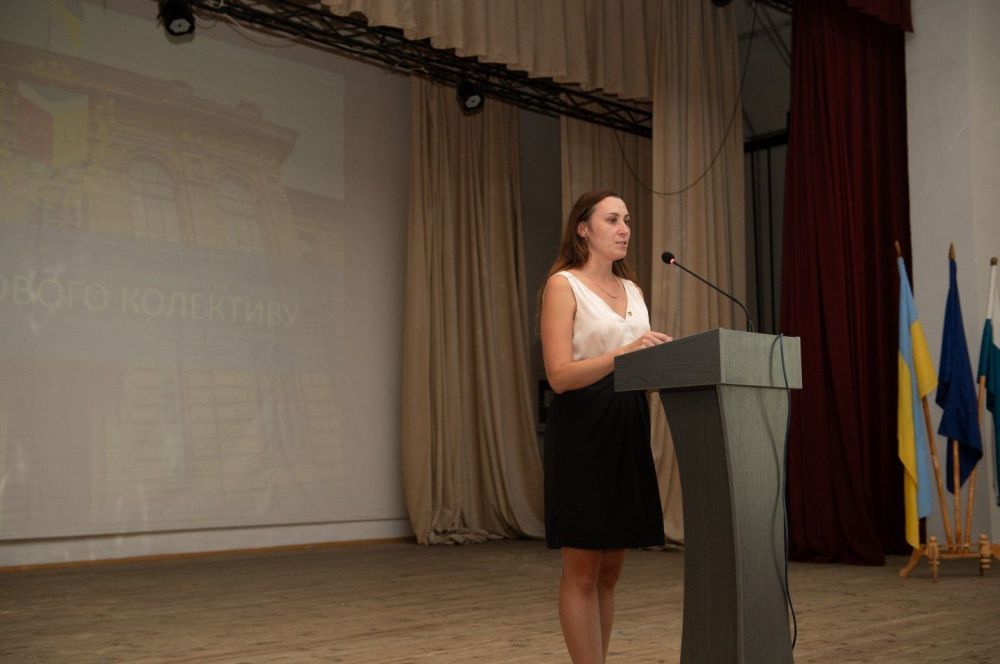 Очільниця університету Марина Гриньова привітала присутніх із початком нового навчального року, подякувала ЗСУ за можливість навчати і навчатися.