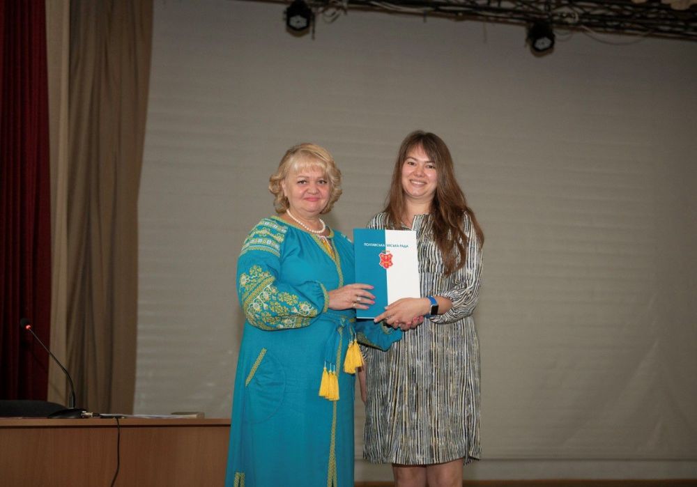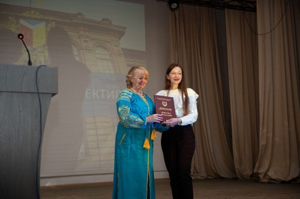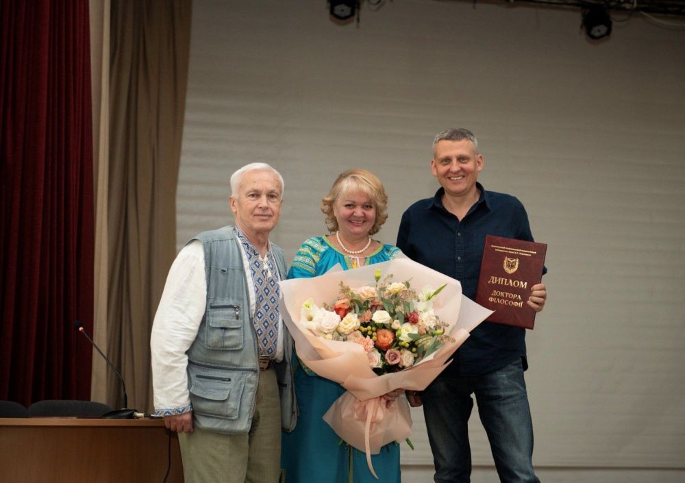 Василь Фазан, проректор із наукової роботи вручив дипломи доктора філософії випускникам аспірантури Руслану Ільченко (в галузі знань 05 Соціальні та поведінкові науки) та Марії Поляковій-Лагоді (в галузі знань 01 Освіта/Педагогіка).