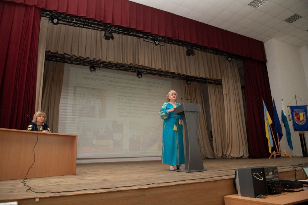 У доповіді щодо виконання цільових показників діяльності Полтавського національного педагогічного університету імені В Г. Короленка у 2022-2023 н.р. та завдань на 2023-2024 н.р. ректорка Марина Гриньова наголосила на важливості підвищення наукового рейтингу навчального закладу, збільшенні кількості годин навчальних занять для здобувачів вищої освіти ЗВО, які викладаються англійською мовою (крім мовних дисциплін); розширенні баз практик та можливостей соціального партнерства із роботодавцями; проведенні організаційної та просвітницької роботи щодо необхідності здійснення міжнародної академічної мобільності в університеті для здобувачів вищої освіти.